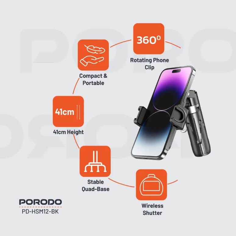 التقط كل لحظة مع عصا بورودو السيلفي القابلة للطي، أداة متعددة الاستخدامات ومتينة للغاية لعشاق التصوير. مصنوعة من مادة ABS عالية الجودة وسبائك الألومنيوم، وهي حامل ثلاثي القوائم قابل للتمديد بقاعدة رباعية متينة لالتقاط صور ثابتة. يوفر دورانه بزاوية 360 درجة زوايا ديناميكية، بينما يتيح لك مصراع الكاميرا اللاسلكي بتقنية بلوتوث الإصدار 5.2 التقاط ما يصل إلى 5000 صورة بشحنة واحدة. مثالية للمغامرات أثناء التنقل، بفضل بطاريته المدمجة القابلة لإعادة الشحن وتصميمه المدمج القابل للطي. تتوافق عصا السيلفي هذه تمامًا مع أنظمة iOS 4 والإصدارات الأحدث وAndroid 8 والإصدارات الأحدث لضمان إبداع لا حدود له. الميزات: