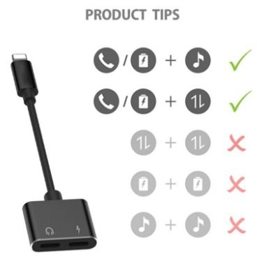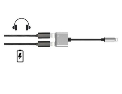 كابل 2 في 1 فاصل لمنافذ الشحن/ مقبس صوتي لايتيننج أسود وصلة صوت للايفون