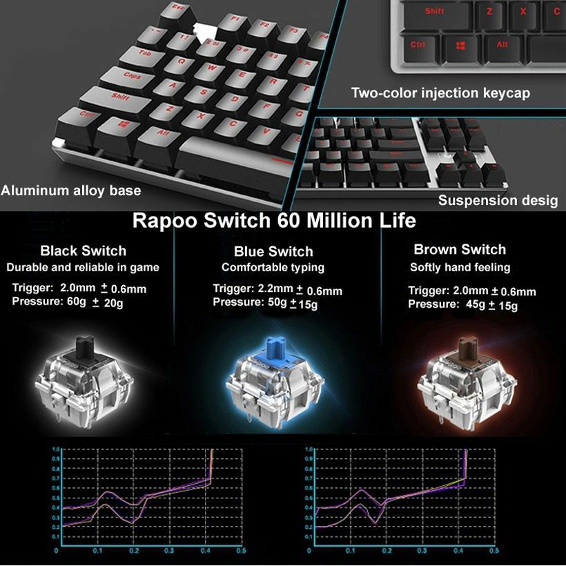 كيبورد جيمنج من RAPOO V500 ميكانيكي بلاك سويتش