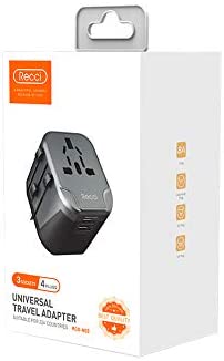 شاحن السفر العالمي Recci RCG-N03 شاحن الحائط - ثنائي الصمامات مخرج التيار المتردد المقابس الدولية متوافقة في أكثر من 150 دولة