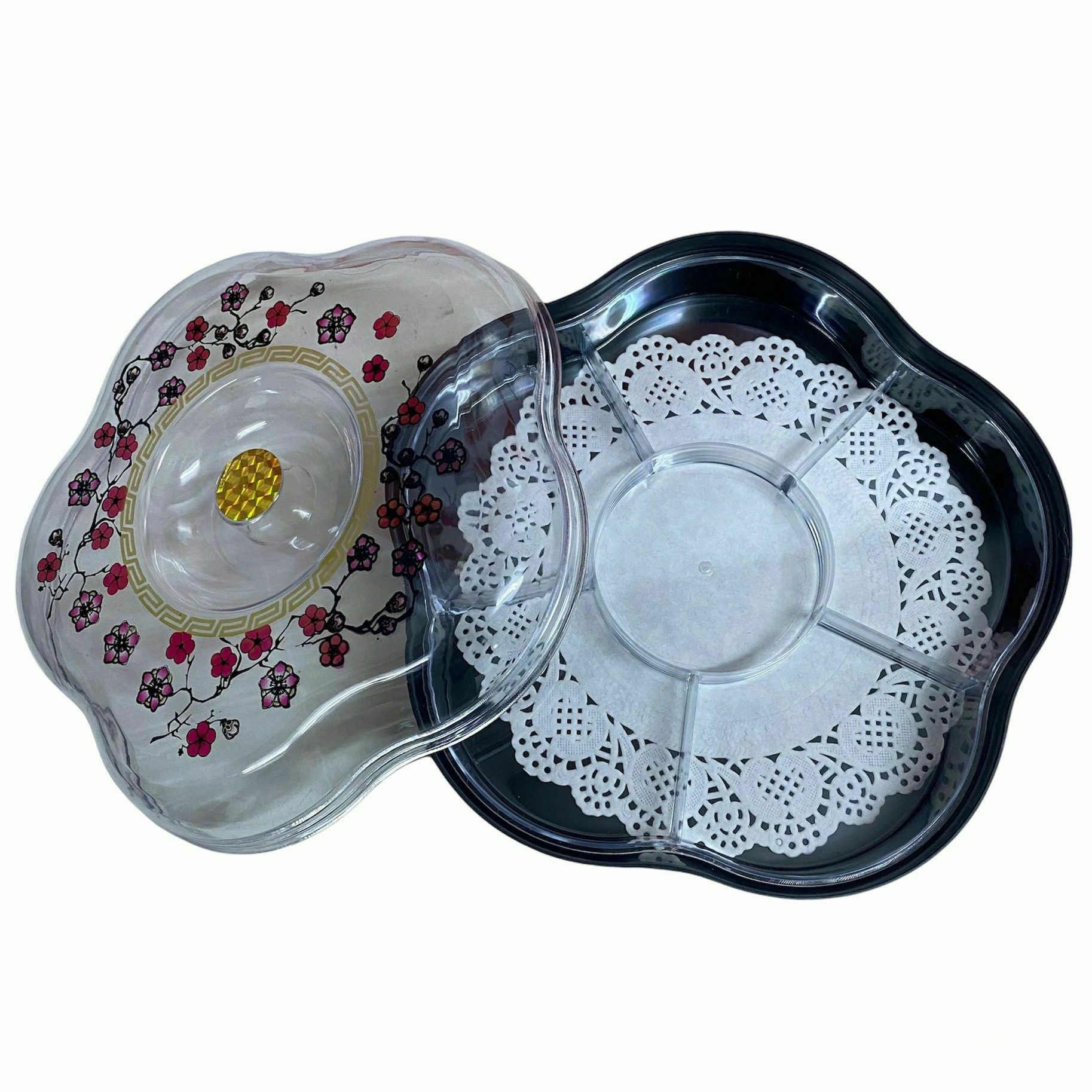 علبة للحلويات مزودة بقاعدة مرتفعة على شكل زهرة