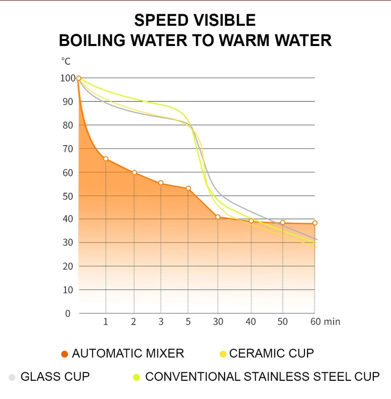 الخلط التلقائي: يستخدم كوب الخلط التلقائي القوة المغناطيسية وتقنية التحريك الذاتي للسوائل لتحريك السائل في الكوب، ويحتاج فقط إلى الضغط على المفتاح لتبريد المشروب وهزه بسرعة.