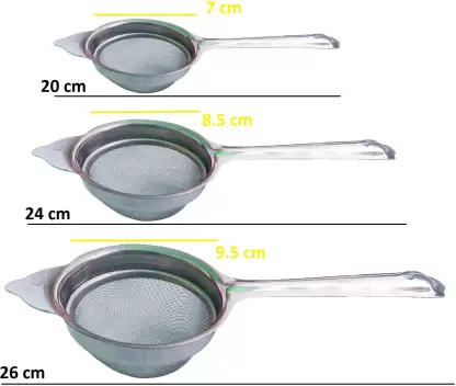 مشخل الشاي طقم مصفاة شاي من الفولاذ المقاوم للصدأ من كيتشويش تشاني مكون من 3 قطع (7، 8.5، 9.5 سم) مصفاة شاي (عبوة من 3 قطع)