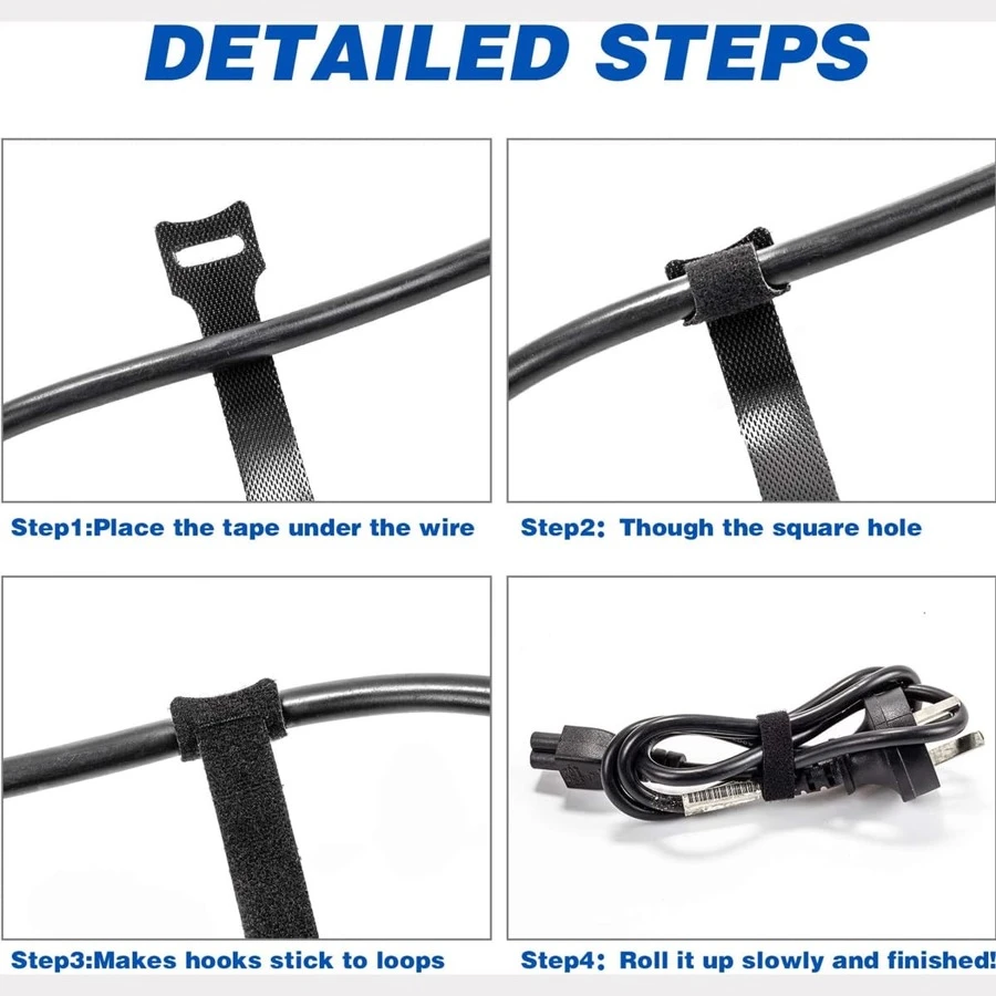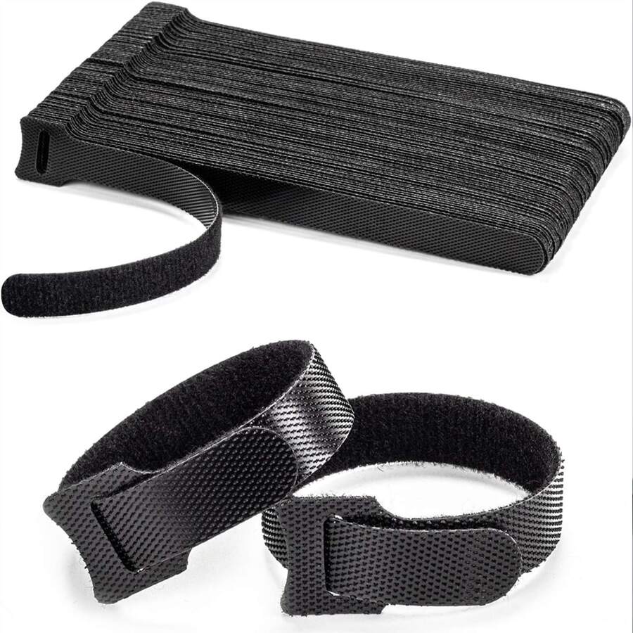 20 Pack Reusable Cable Ties for Cables in Black, Adjustable Wire Organizer with Hook Loop Closure, Versatile Wire Management