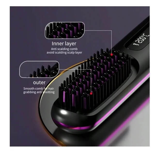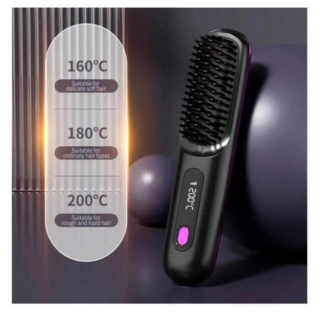 Cordless Hair Straightener Comb, Portable Negative Ionic Heating Comb, 35W USB Rechargeable Hair Straightener Brush, Suitable