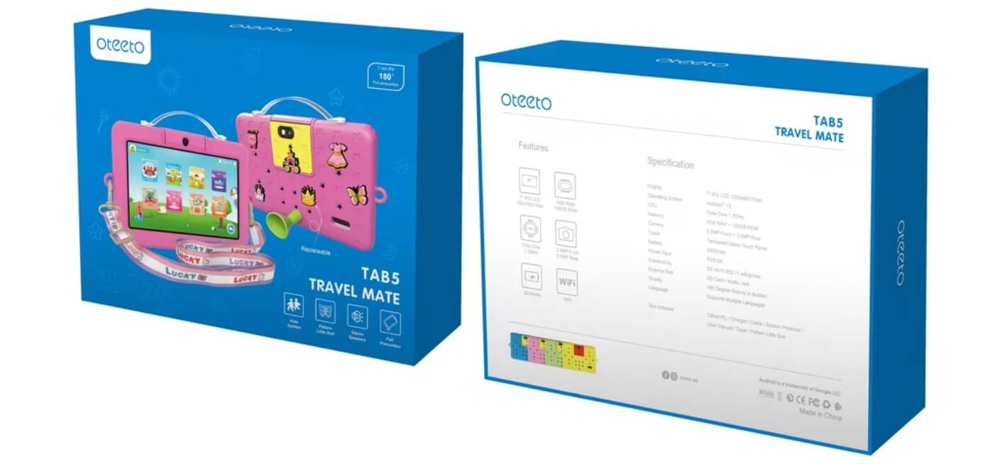 The Oteeto Tab 5 Travel Mate Tablet is the perfect tablet for children, an engineering marvel or a masterpiece expertly crafted for their small hands and vibrant imaginations. It provides a safe and fun educational and entertainment experience, with the durability to withstand children's daily adventures.