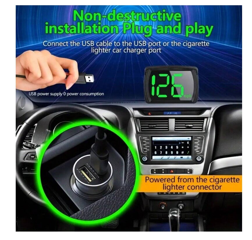 Digital Speedometer, Head-Up Display (HUD), GPS Speedometer, USB Port, Overspeed Warning, 3.5-inch Display, Smart Odometer, Easy Installation, Car and Truck Compatibility, Driving Safety