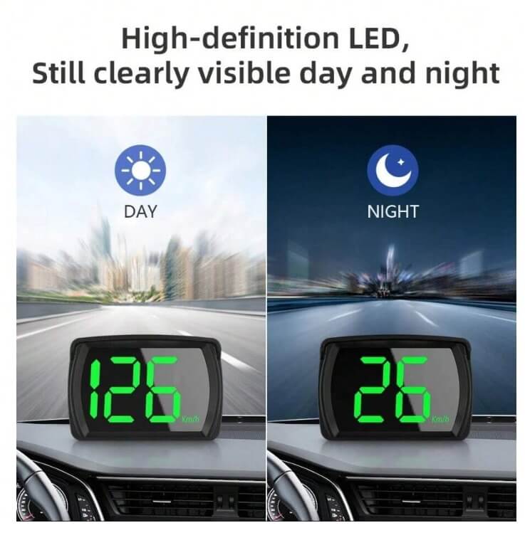 This innovative digital speedometer from Shine is an ideal solution for drivers seeking high accuracy and ease of use with a modern design. It features a Head-Up Display (HUD) that projects speed data directly onto the vehicle's windshield, ensuring better focus on the road. Here are its key features: