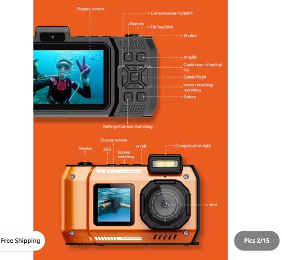 Capture memorable moments in any environment with the Waterproof Digital Camera. This camera features dual screens and 18x zoom, making it easy to frame and capture the perfect shot. You have a 2.88″ 480×640 main screen and a secondary 1.44″ 128×128 display to easily capture selfie images.