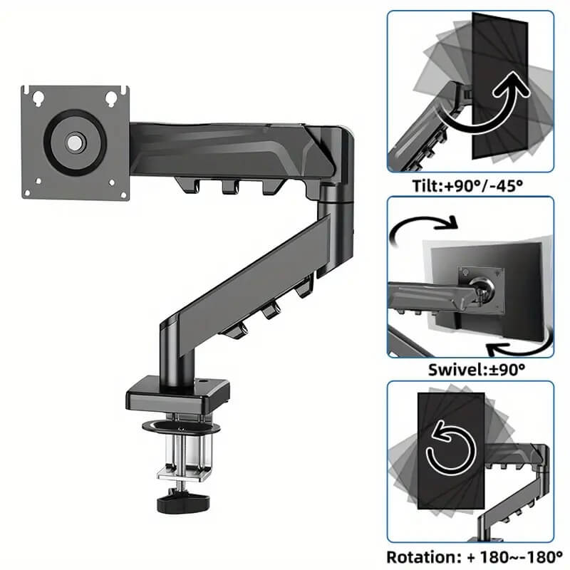 The gas spring allows you to easily move the monitor in all directions—up, down, forward, or backward—to achieve the ideal viewing angle and reduce neck and eye strain, making it an ideal choice for desks, workstations, and even gaming setups.