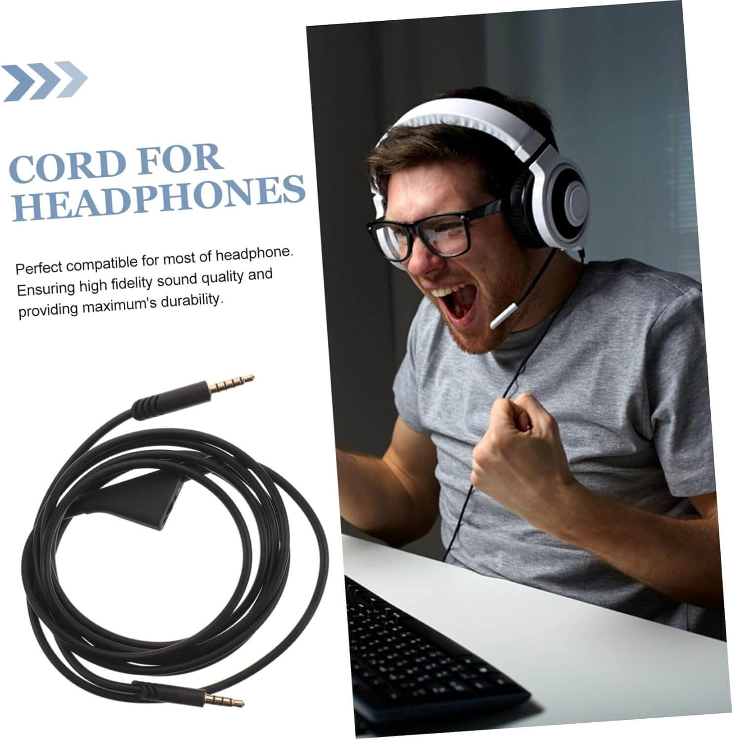 - Easy to connect and use, and sufficiently long, providing great convenience. A great replacement audio cable for headphones, double-ended.