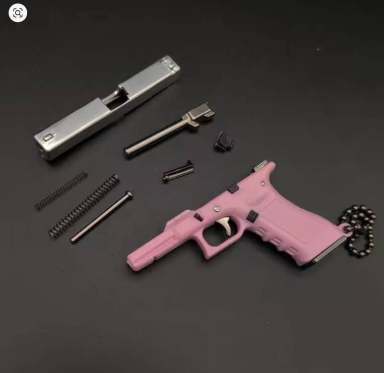This 1:3 scale G17 metal miniature pistol is crafted from high-quality alloy for durability and realistic weight. It features an accurate reproduction of the real pistol's details and can be disassembled and assembled for display or hobby purposes. It comes with a practical keychain, making it a stylish addition to a keychain or a collectible. It makes a great gift for miniature gun enthusiasts or miniature decor enthusiasts, and it will add a touch of elegance to any desk or display shelf.