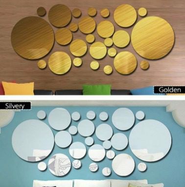 ملصق جداري بتصميم مرآة مكون من 26 قطعة على شكل دائرة بأحجام مختلفة فضي