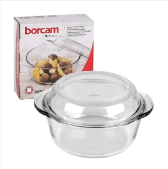 اناء دائري زجاجي بغطاء من بوركام - 16 سم