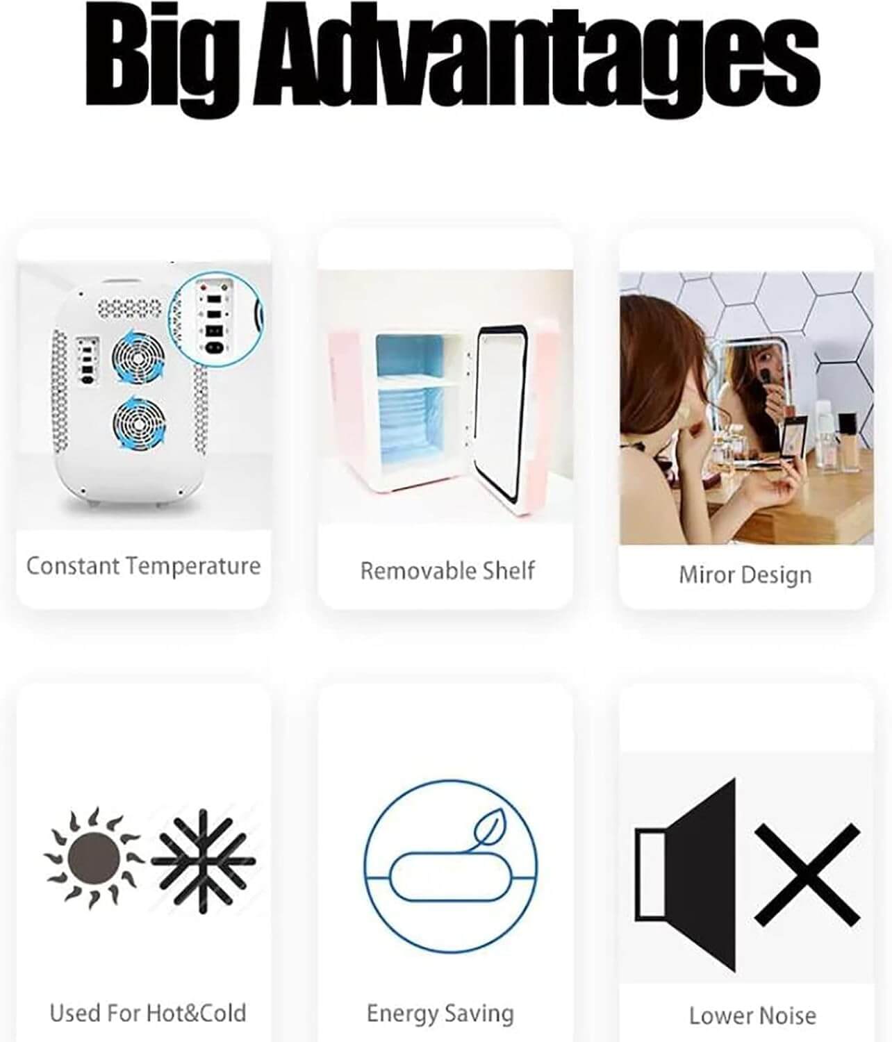 ثلاجة صغيرة لمستحضرات التجميل مزودة بمرآة وضوء LED، تستخدم لمنتجات البشرة في المنزل والسيارة 8 لتر 55 وات CZBXHZJMAA أبيض