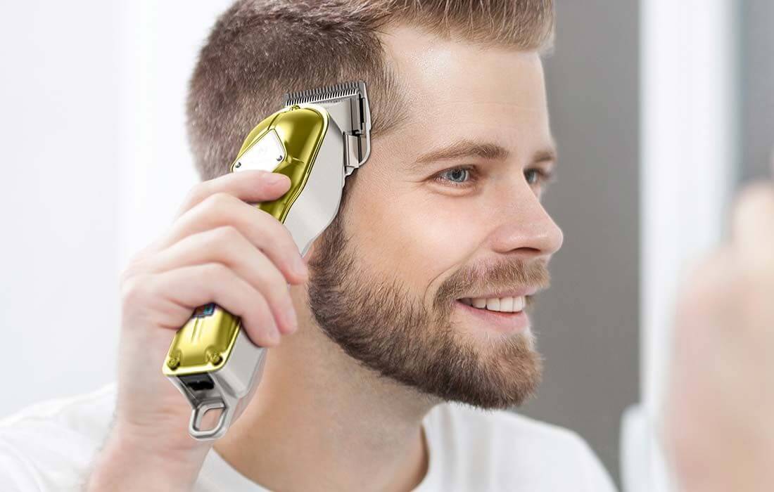 About this Article Men's Hair Clipper Grooming Kit: This is a complete grooming kit for cutting hair, including a cape, lubricating oil, cleaning brush and a full range of protective accessories (3/6/10/13/16/ 0.948 in.) For capellos of various lengths (0.05-0.815 in.). All-in-one professional hair clippers: This multi-purpose hair clipper combines the functions of a hair and beard trimmer in one tool. Includes full-size guide combs to meet your head and face trimming needs, it's also very suitable for children's or toddlers' haircuts thanks to the low-noise and safety blades. Silencer engine and capacity: The engine of the car from electric hair clippers is powerful enough to cut through even the thickest hair with ease. The blade's teeth are firmly aligned with each other to remove hair without snagging or pulling, offering an effective haircut. Note: Before turning on the clipper, please remove the tape and remove the protective cover. Dual Voltage Wireless Charging: The hair trimmer can be corded or cordless, which is very suitable for self-cutting. Universal charging: a full charge gives you up to five hours of use. Please note that an adapter may be required (not included in the package). LED Display, Ergonomic Handle: The LED display of the hair clippers clearly shows the remaining battery percentage. This professional men's hair clipper is very comfortable to hold, easy to use and clean even for first time users.