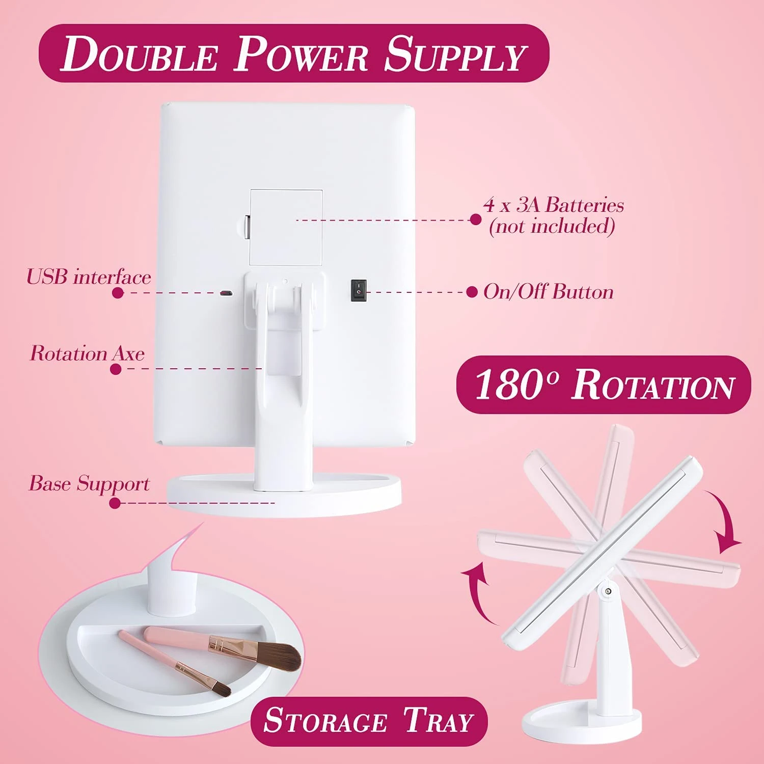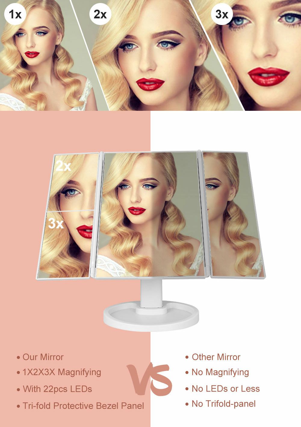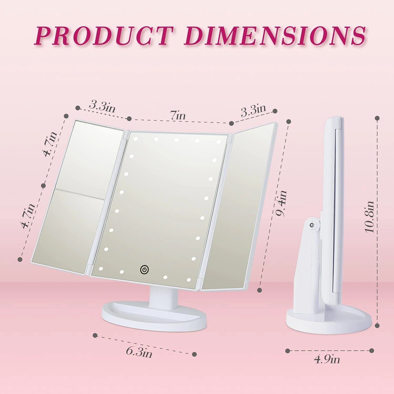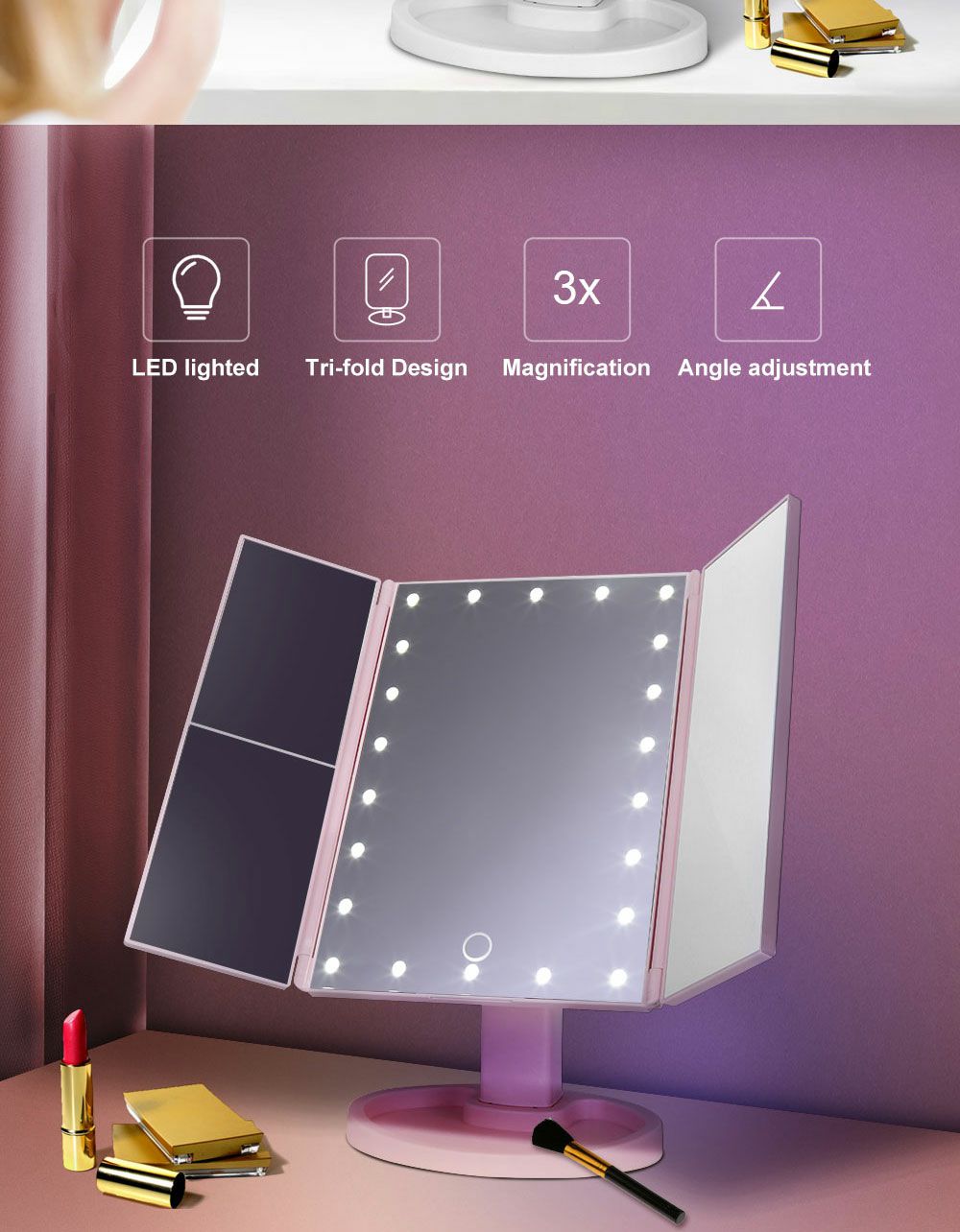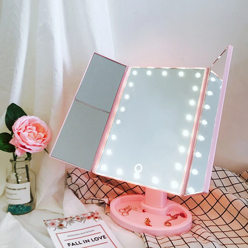 الذكية اللمس مرآة الجمال مرآة المكياج المزودة بمصباح ليد سطح المكتب مرآة تزين سطح المكتب ثلاثة جوانب للطي ماكياج مرآة