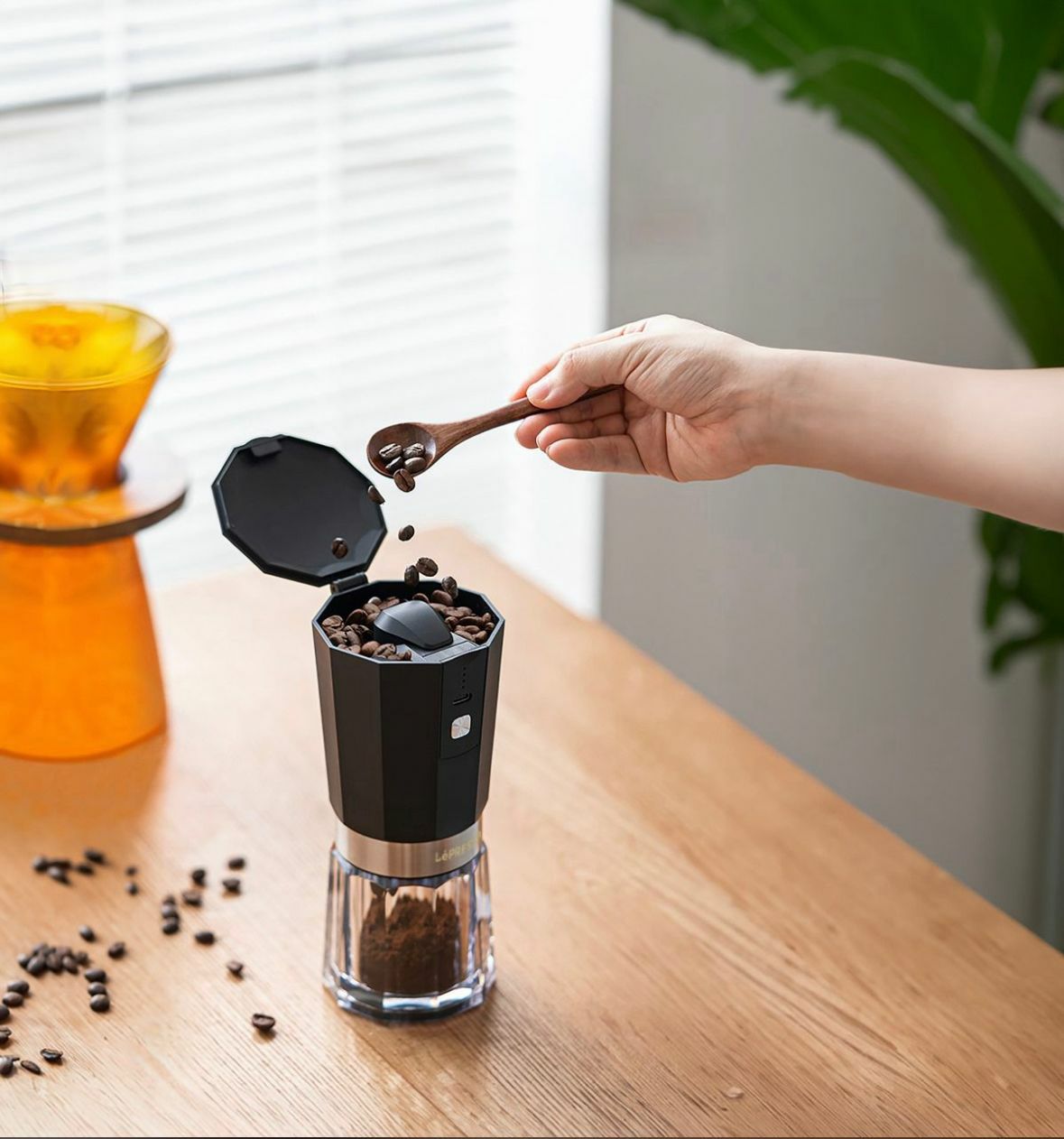 -7.4V/800mAh Lithium Battery -35-40g Powder Container -30-35g Bean Container -420ss High-Grade Steel -40 Cups Single Charge -35g Capacity