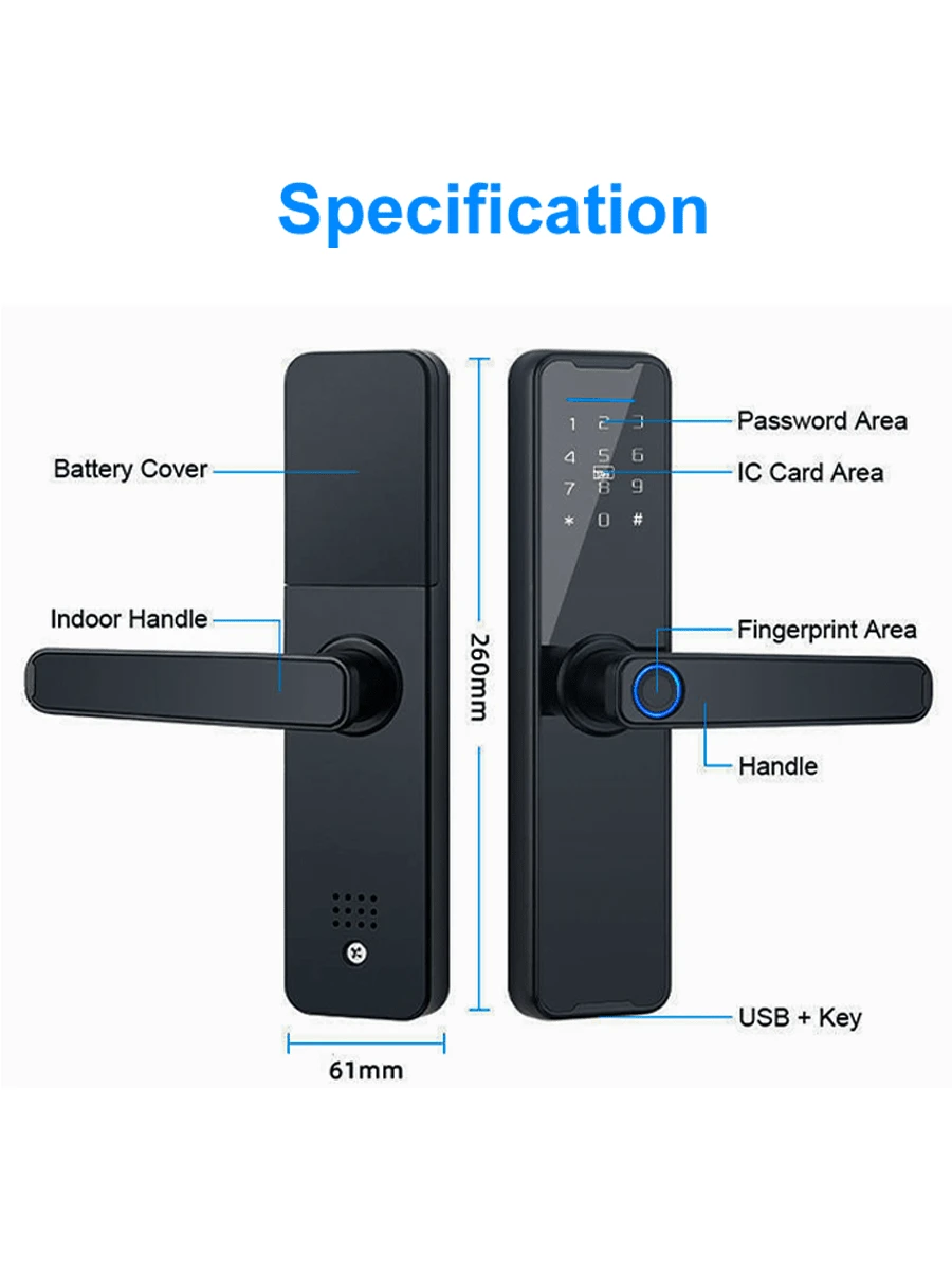 Smart Door Lock Wifi Smart Door Lock, Fingerprint Door Lock Smart Door Lock Front Fingerprint Gateway Door Lock with Fingerpr