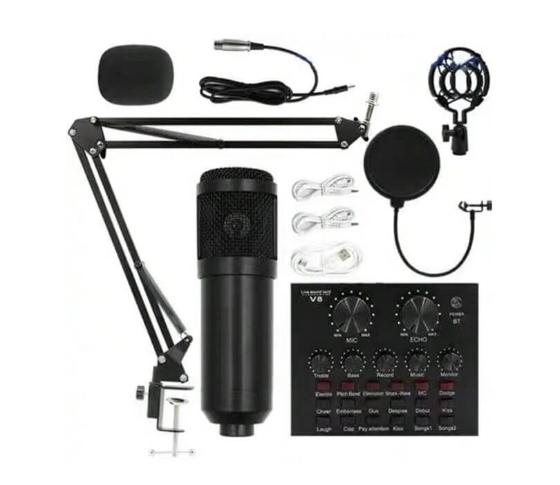 طقم كامل مايك مع مكسر الصوت للبث المباشر مع ميكروفون، والحامل تثبيت في الطاولة للميكرفون، تسجيل الكاريوكي