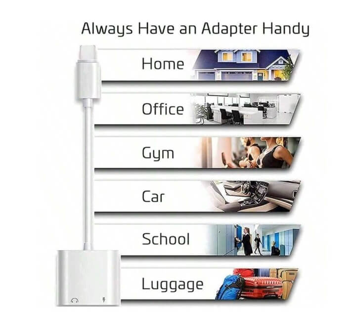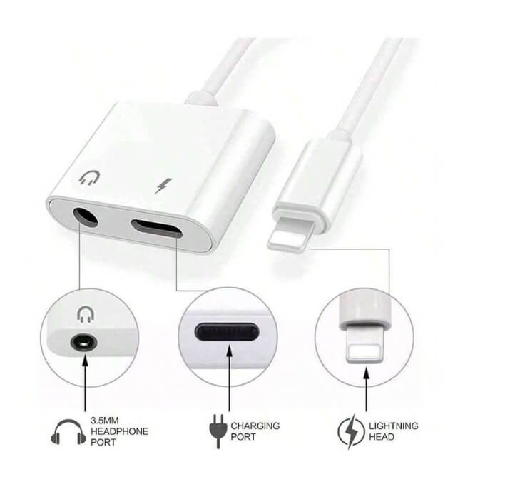 وصلة ايفون محول جاك لرأس سماعات الصوت من Lightning إلى 3.5 ملم متوافق مع iPhone، ومحول شاحن 2 في 1 ومحول تقسيم الصوت AUX وافق