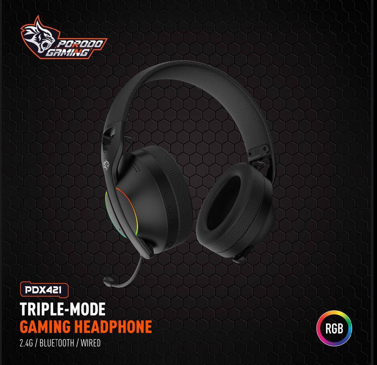 سماعة جيمنج من برودو بتقنية 3D مع اضاءات وعزل الصوت Porodo PDX414 E-sports High Definition Gaming Headphone