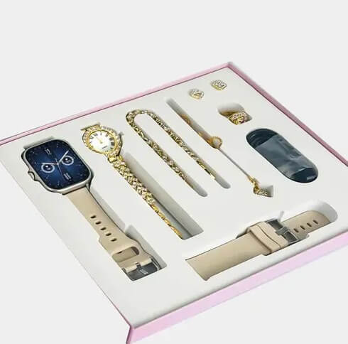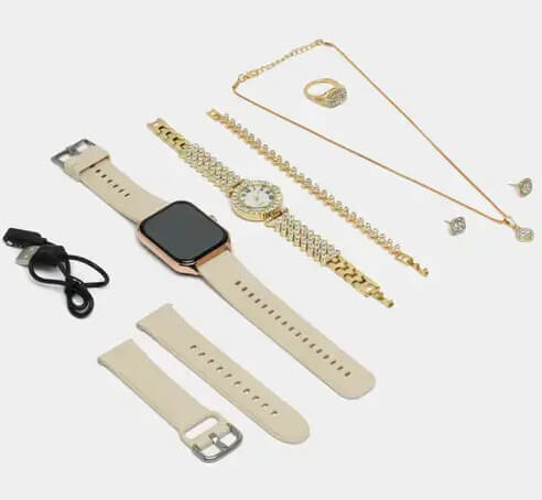 طقم هدية نسائية ساعة ذكية جديدة A58 plus 8 في 1، قلادة، أقراط، سوار، خاتم، ساعة، مجوهرات ذكية، ساعة ذكية فاخرة PK A59 Plus