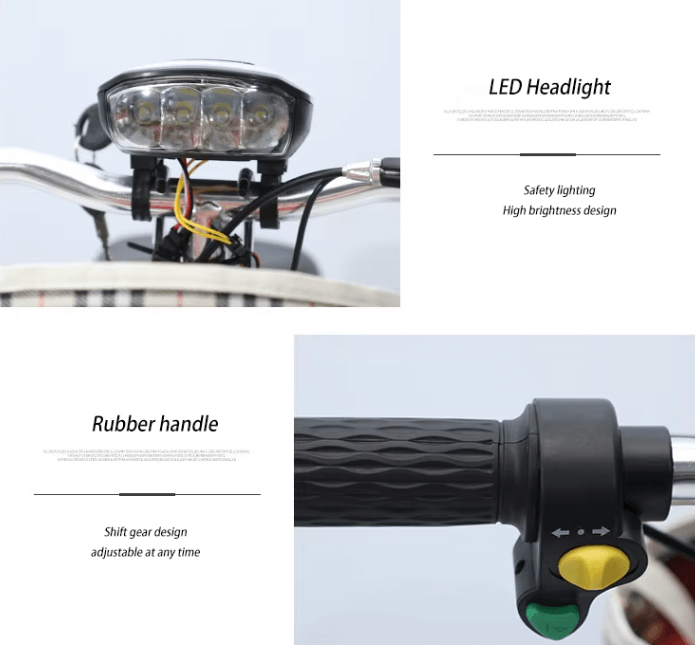 🧺 سلة أمامية: متينة بخامة قماشية أو بلاستيكية لحمل الأغراض