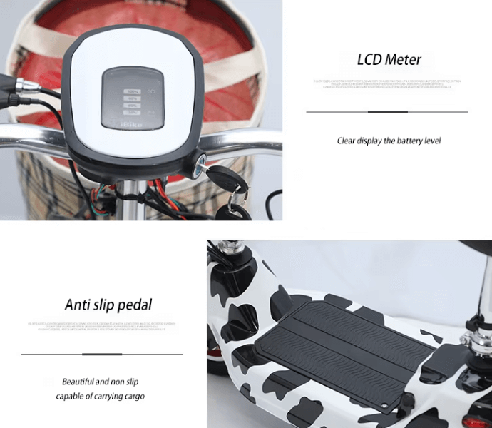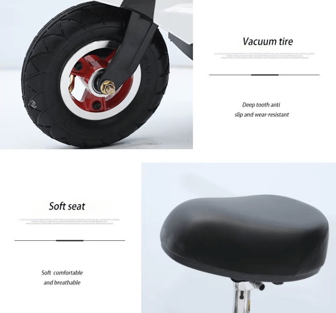 استمتع بتجربة تنقل سهلة ومريحة مع هذا السكوتر الكهربائي العصري المصمم خصيصًا للتنقل داخل الأحياء والأسواق والمشاوير القصيرة. يتميز السكوتر بمقعد مبطن قابل للتعديل، وسلة أمامية عملية لحمل الأغراض اليومية مثل المشتريات أو الأغراض الشخصية. تصميمه الآمن والمدمج يجمع بين الأناقة والأداء، مع إطار متين وسطح مريح للوقوف أو الجلوس.