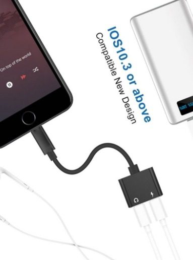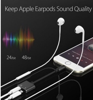 كابل 2 في 1 فاصل لمنافذ الشحن/ مقبس صوتي لايتيننج أسود وصلة صوت للايفون