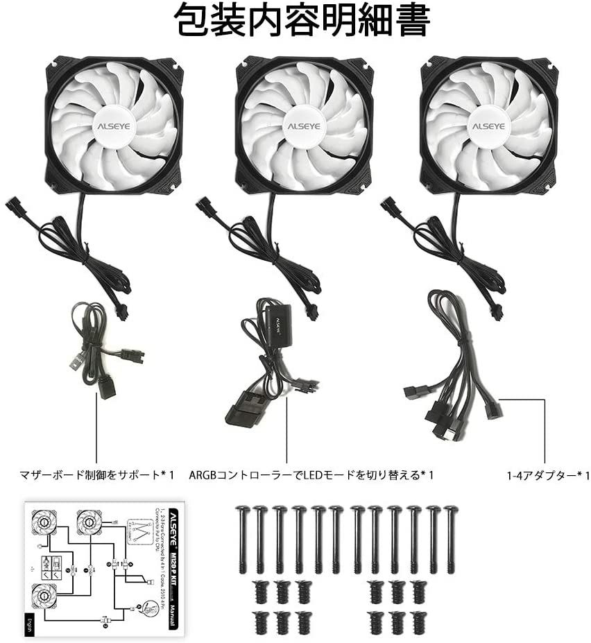 مراوح تبريد بأضاءات RGB مع جهاز تحكم 3 مراوح للكمبيوتر Alseye Halo 4.0 120mm
