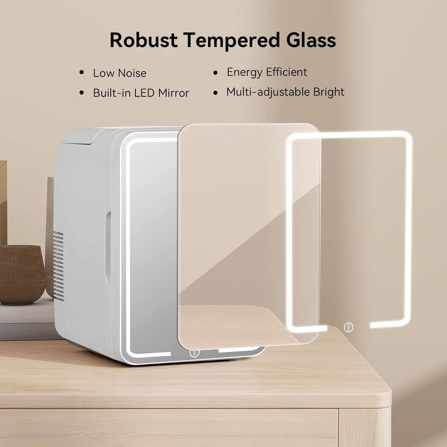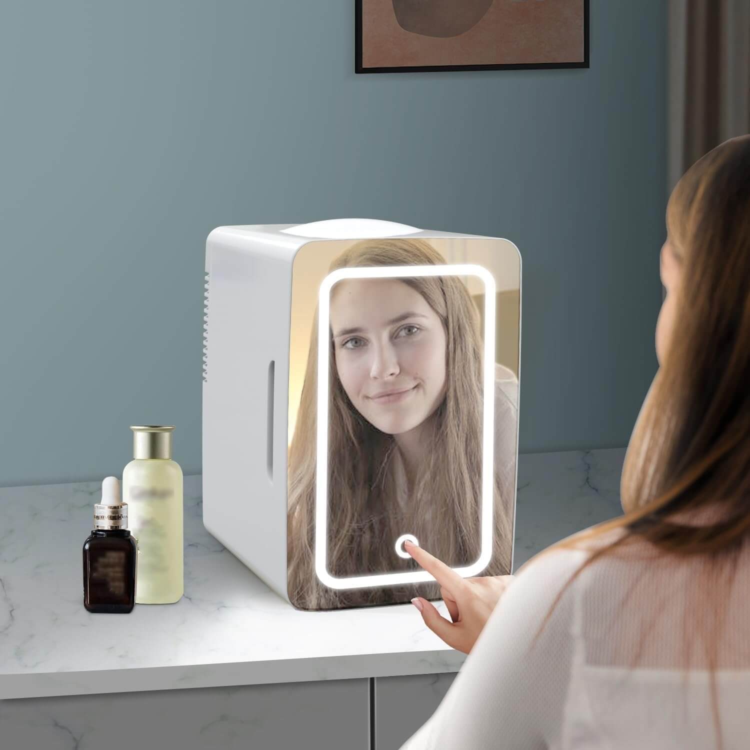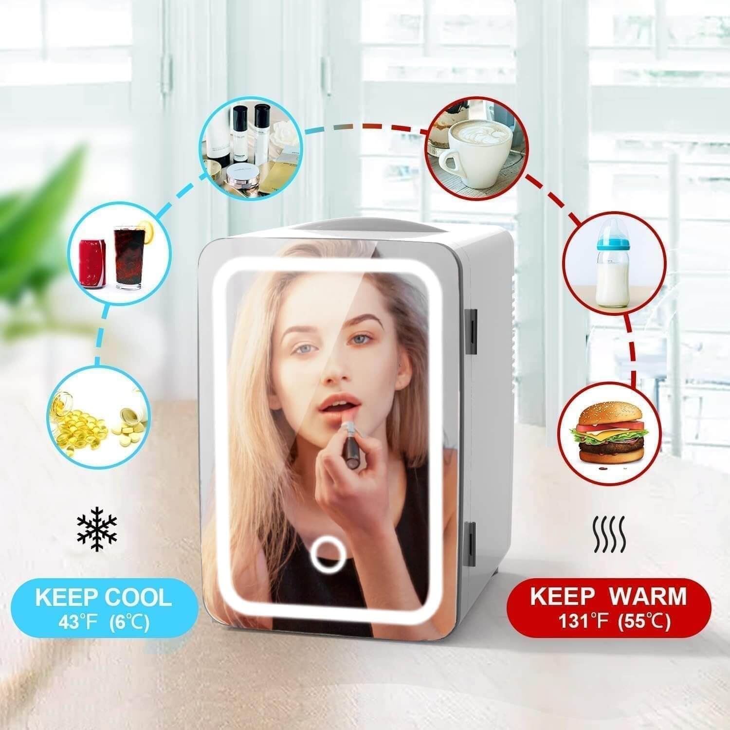 ثلاجة صغيرة لمستحضرات التجميل مزودة بمرآة وضوء LED، تستخدم لمنتجات البشرة في المنزل والسيارة 8 لتر 55 وات CZBXHZJMAA أبيض