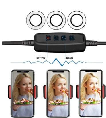 رنج لايت بثلاث اضاءات مختلفة مع ستاند للصور السيلفي مع حامل للهاتف بمسند للهاتف المحمول أسود