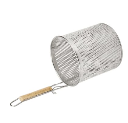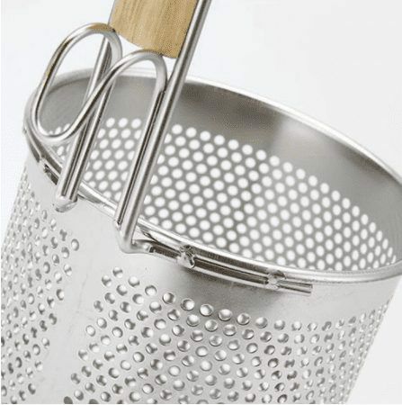 سلة مصفاة طعام من الفولاذ المقاوم للصدأ مع خطاف ومقبض خشبي