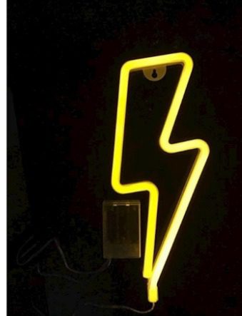 ديكور للحائط بمصباح نيون بإضاءة LED على شكل علامة برق أصفر