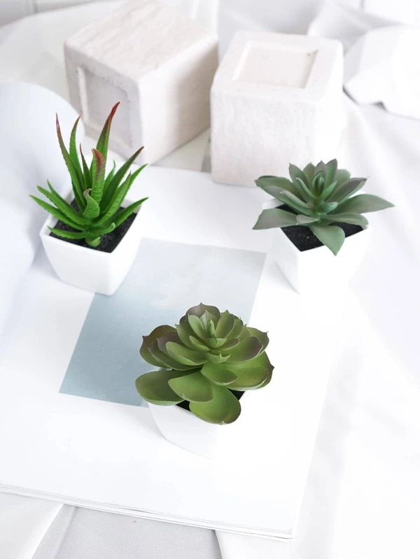 نبتات صناعية للزينة 3 قطع صناعي عصاري محفوظ بوعاء أسلوب أساسي بلاستيك ميني نبات مزيف مزهرية