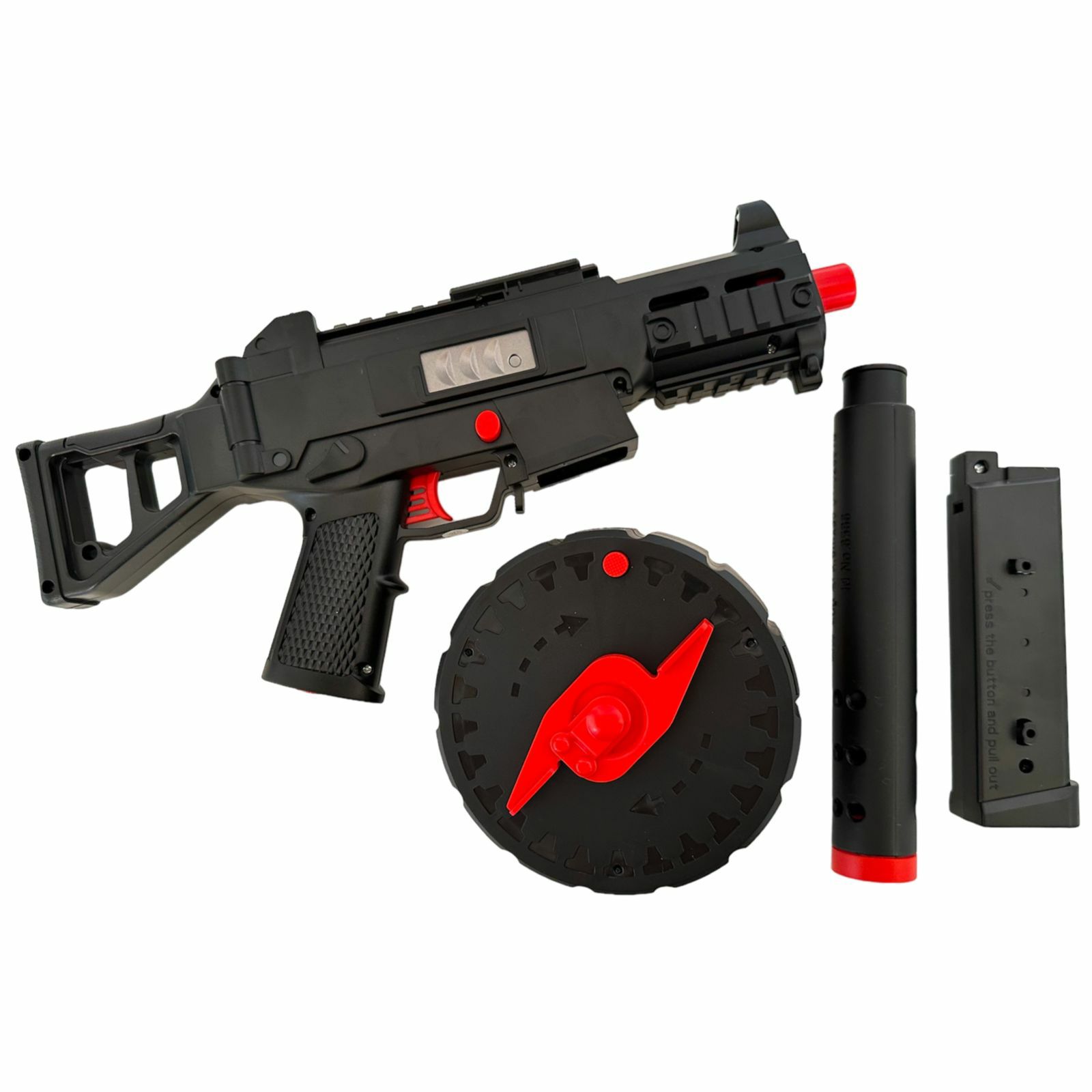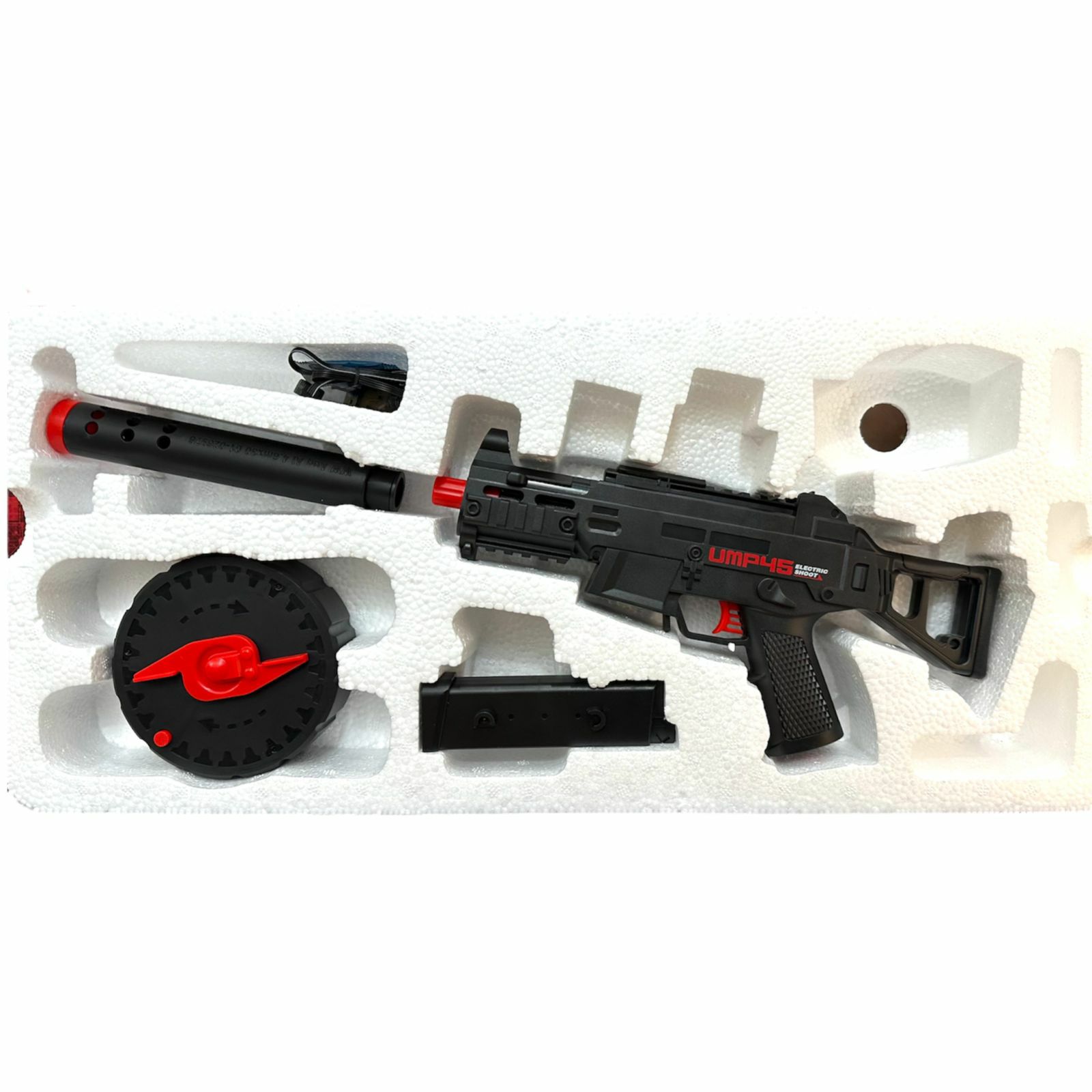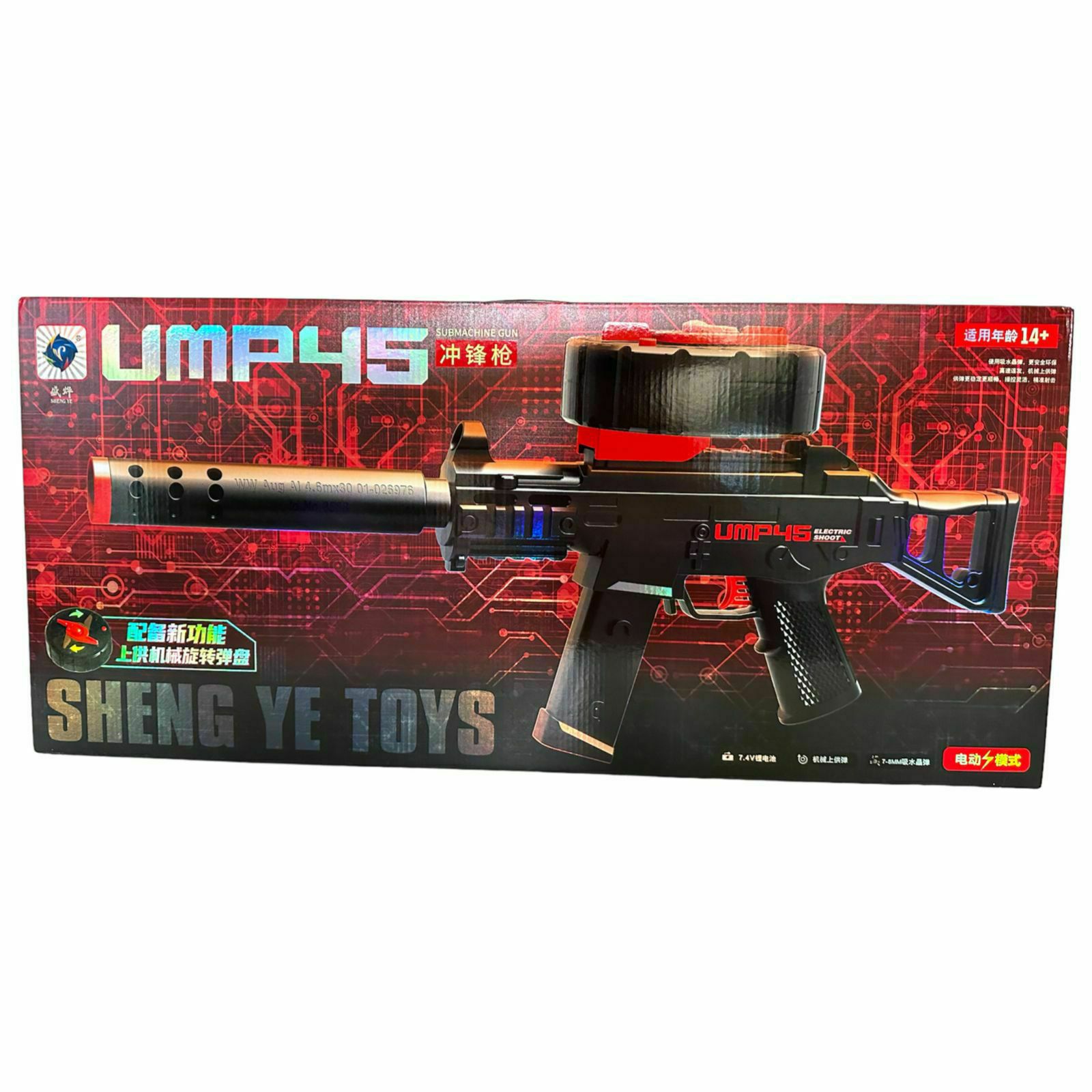 a description The UMP45 submachine gun fires soft Orbeez bullets and comes with a battery. The Orbiball machine toy is designed for children, all you have to do is load the cartridges into the magazine, turn the handle and the game begins, it is a completely safe weapon, the firing range reaches about 35 meters, the set includes a soft-bullet weapon itself (Orbiball), it must be planted In the water for approximately 3 -5 hours to its maximum size, a sight with which you can increase the shooting target, a charger, the machine comes disassembled, even a small child can assemble it, instructions are also included in the kit. If you want to give your child something new from weapons, this machine gun is perfect for you. A cool new electric submachine gun with hydrogel bullets that everyone dreams of. Fires automatically when the trigger is pressed; For category 5+; Shooting distance up to 35 m.