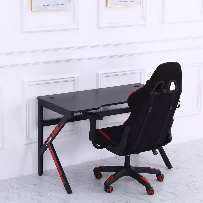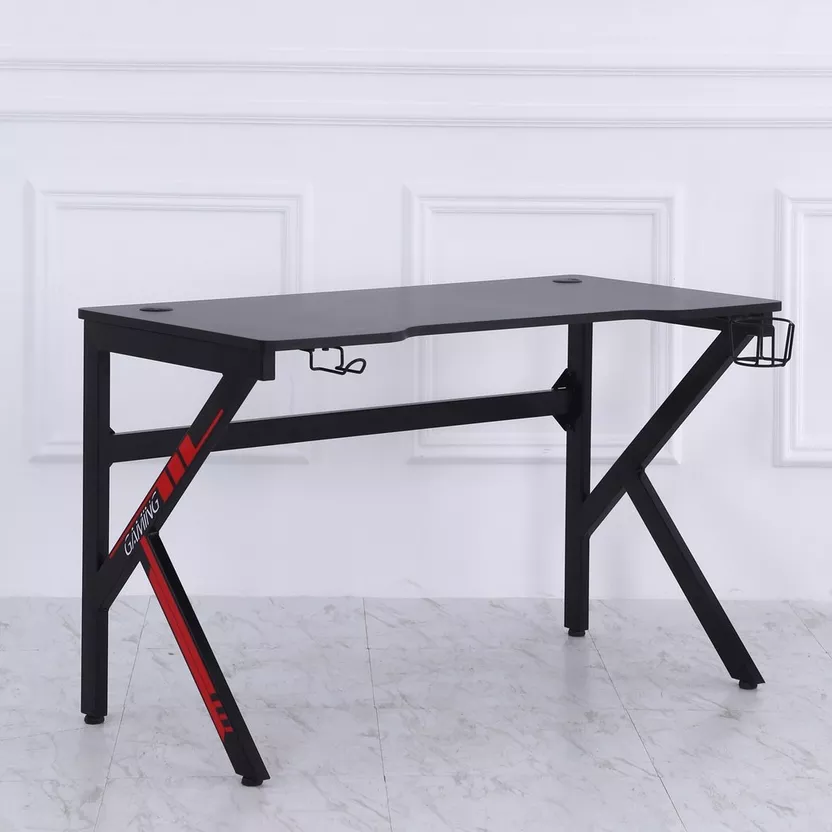 Gaming table 125*65 cm Wooden with carbon fiber surface Strong designed to carry the weight of the computer, screen and its accessories Small size makes it easy to move and install Contains a cup and headphone holder