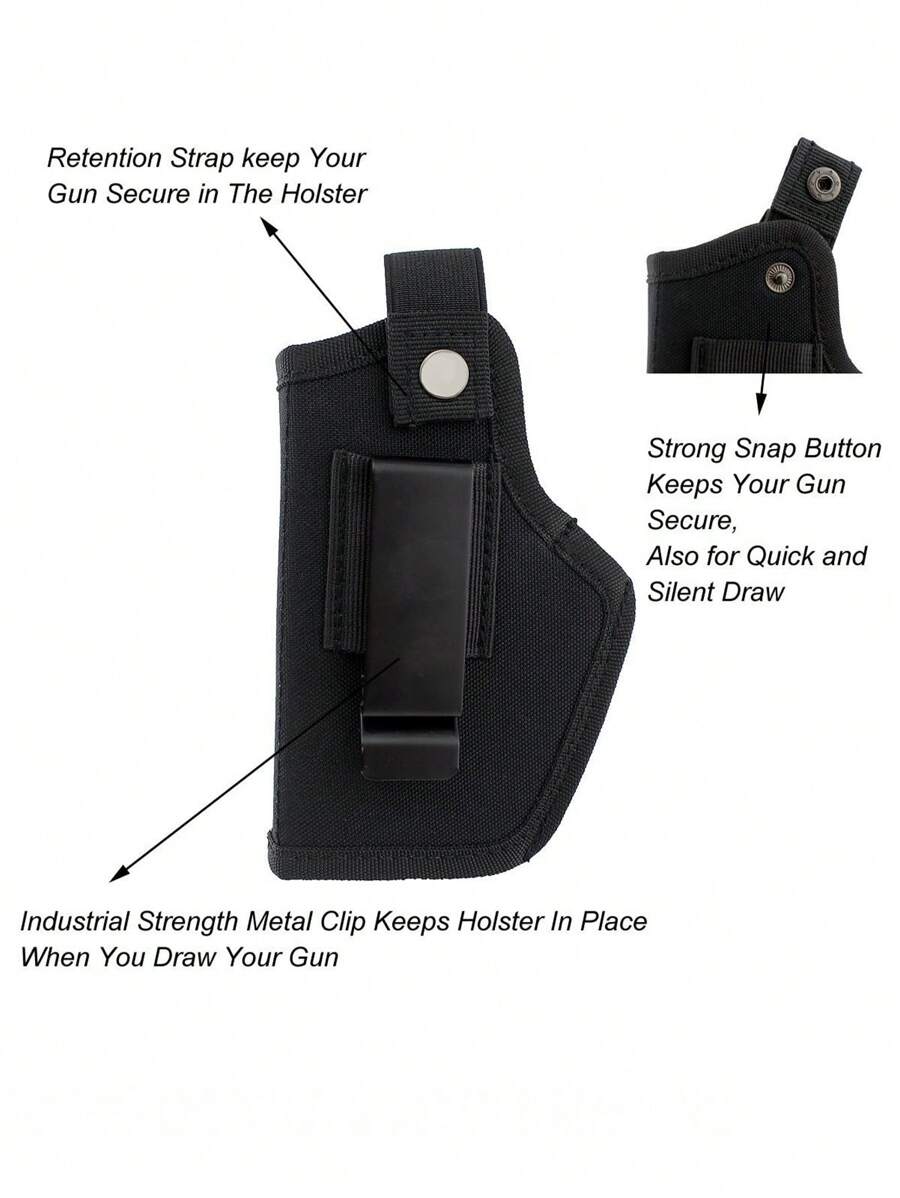 Colour: black Material: polyester Composition: 100% polyester About this item ! Comfortable: A foam layer on these gun holsters for pistols helps ease carrying discomfort, whether you're running errands or taking a late-night stroll COMPATIBLE WITH MOST 380 PISTOLS - Compatible with S&W Bodyguard, Ruger LCP, Kel Tec P3AT, Kahr P380, NAA Guardian, Micro Desert Eagle, and any pistol with a slide length between 4 - 5" Long Sturdy: From the heavy-duty belt clip to the metal snap, each component in our holsters for concealed carry is constructed for optimal durability Secure: A nylon retention strap on the right-handed OWB and IWB holster in extra small helps keep your firearm in place when not in use Versatile: Carry your gun your way; our concealed carry holster for men and women can be worn at the hip, open carry style, and in other positions