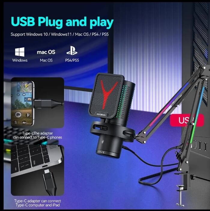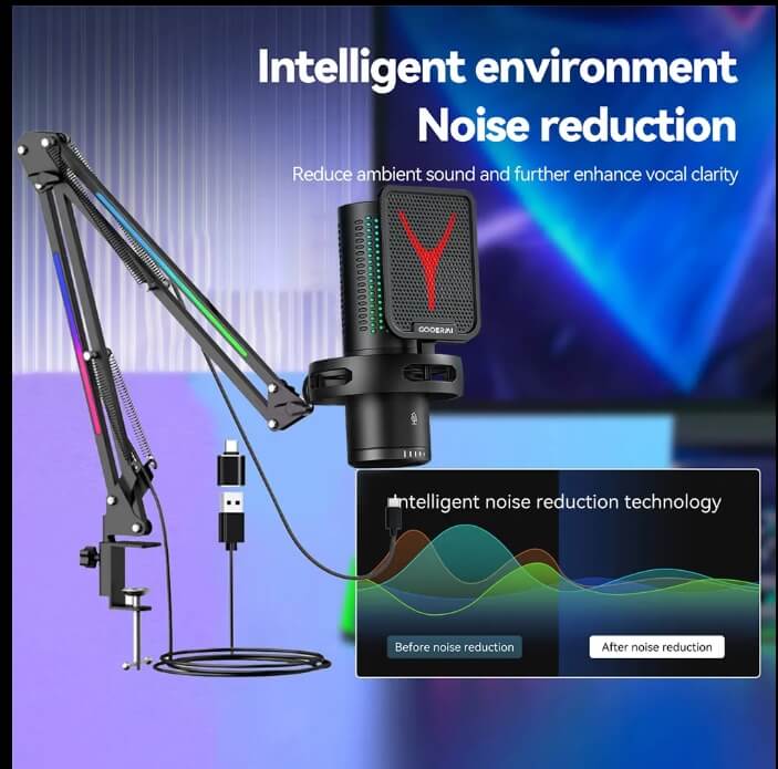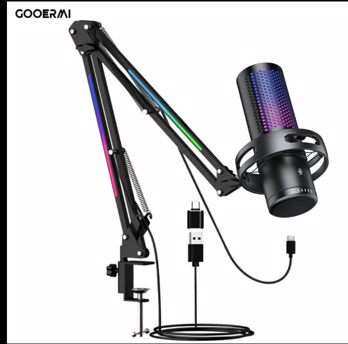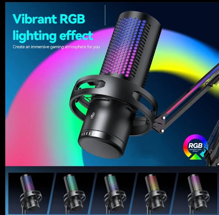 Light-weight, Condenser Microphone, USB Microphone, With RGB lighting, Noise Cancelling, With LED lights