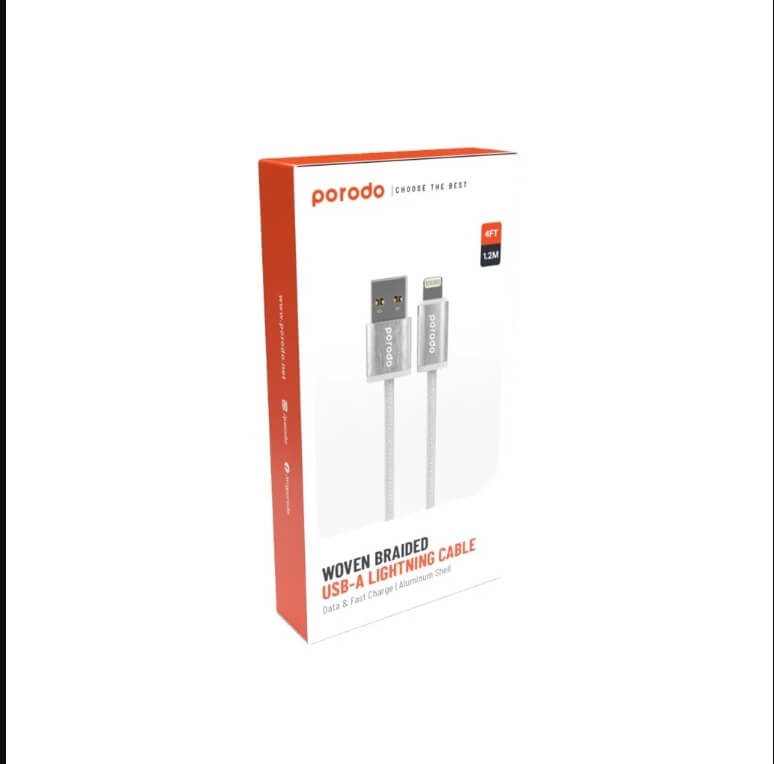 Porodo Woven 2.4A USB A to Lightning Cable 1.2M - White