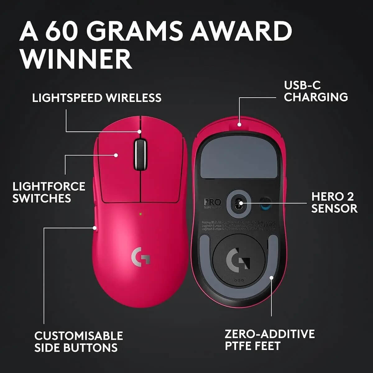 Faster. More precise. Made with pro-level insight. The next generation of our 60g pro gaming mouse was made even more refined through collaboration with the world’s top players.