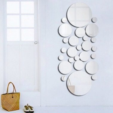 ملصق جداري بتصميم مرآة مكون من 26 قطعة على شكل دائرة بأحجام مختلفة فضي