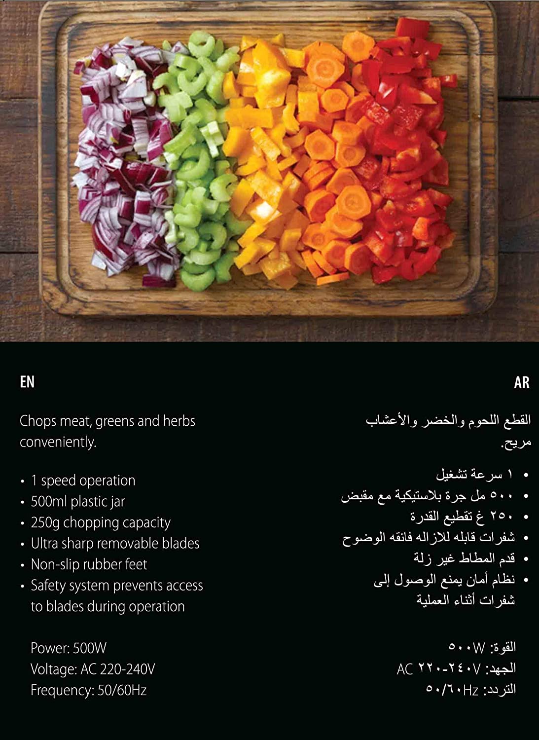 Features a safety system that protects the blades during use