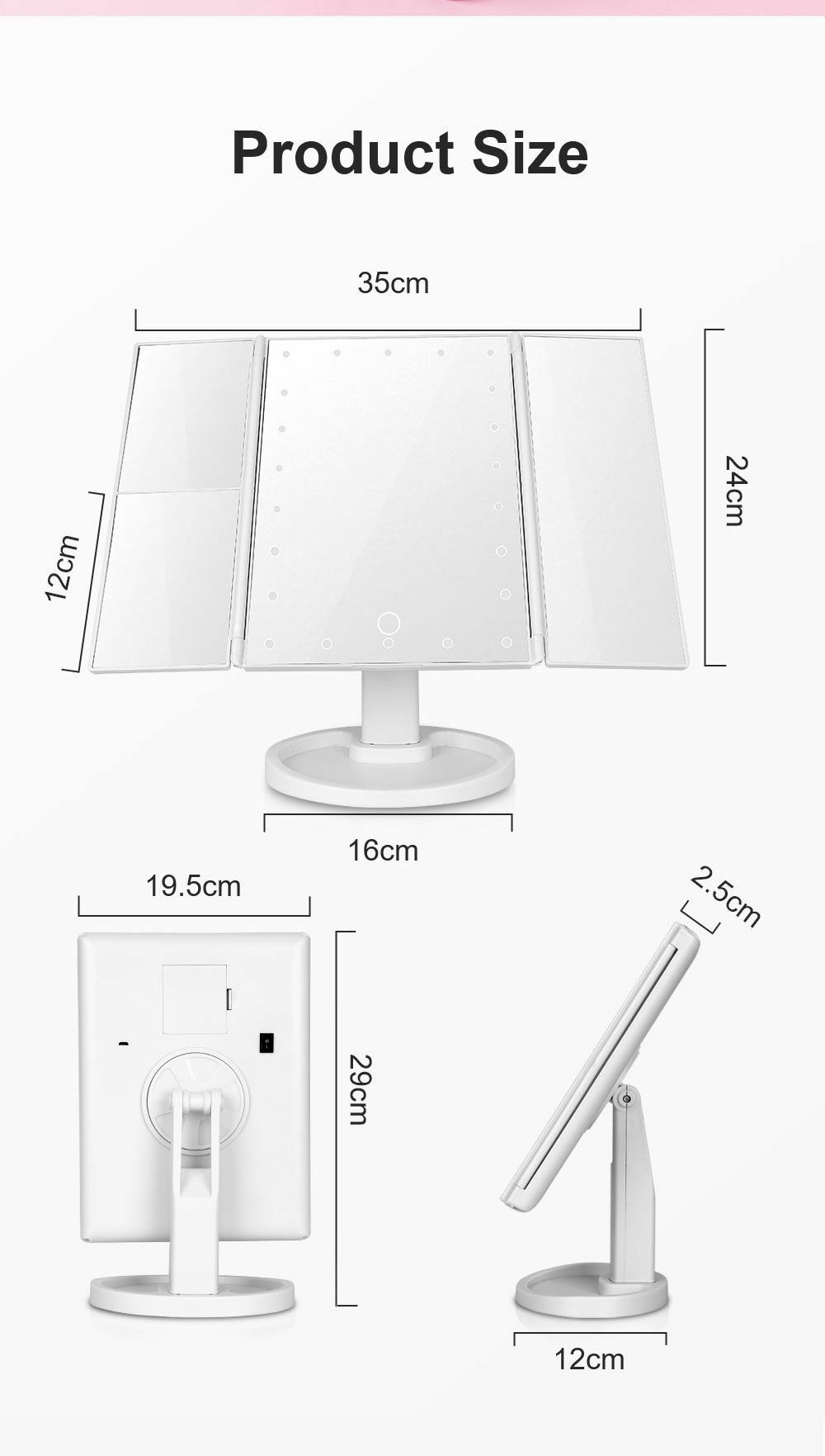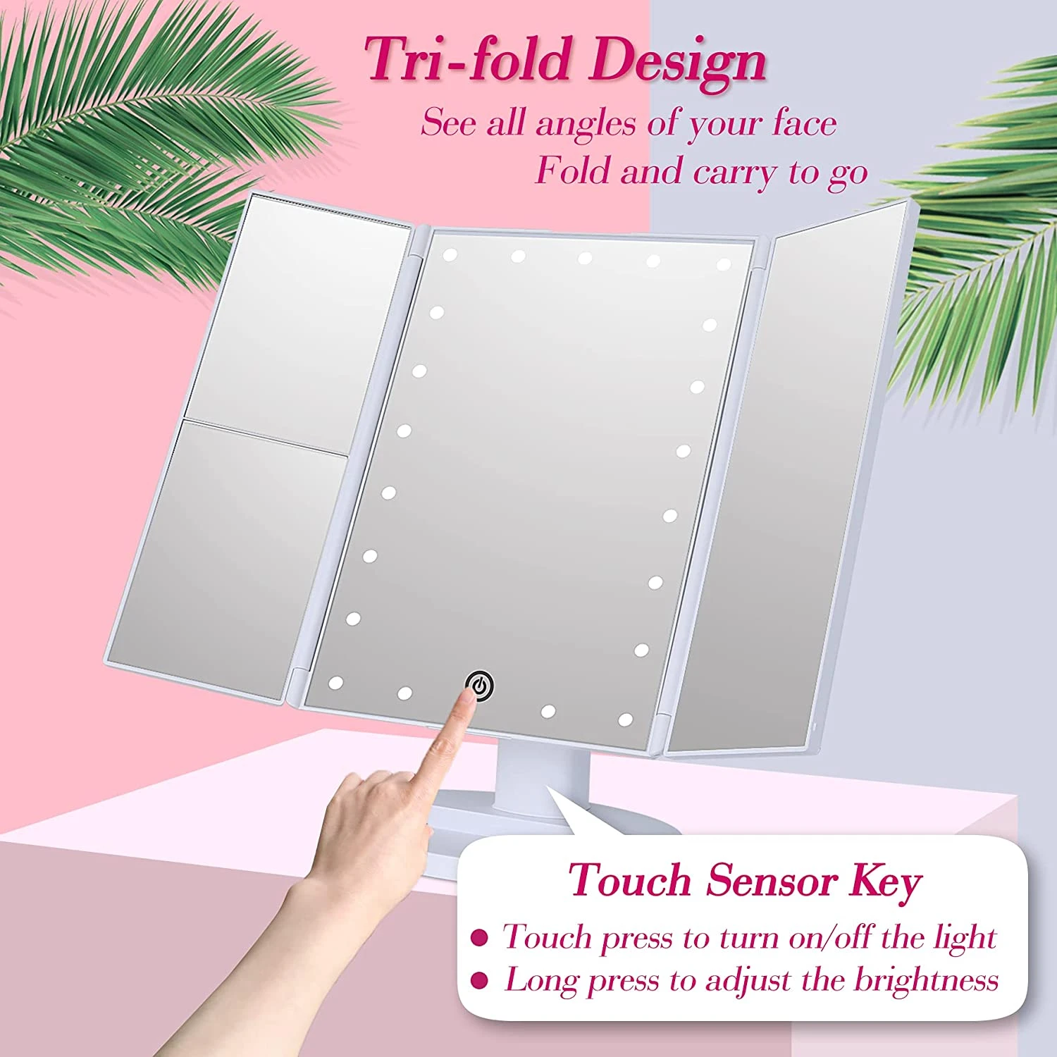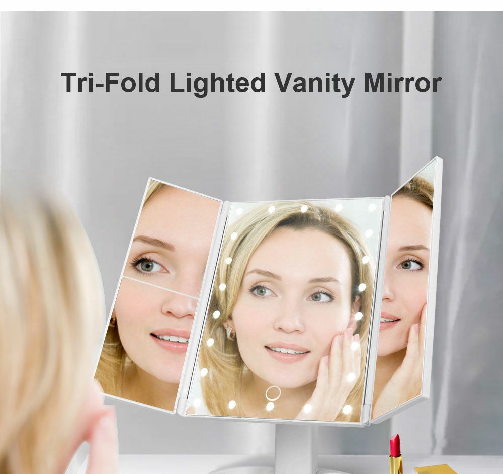 الذكية اللمس مرآة الجمال مرآة المكياج المزودة بمصباح ليد سطح المكتب مرآة تزين سطح المكتب ثلاثة جوانب للطي ماكياج مرآة