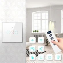 Wi-Fi Touch Feature Specifications Specifications maximum. Strom: 10A(switch) 16A(socket) Load: 1000W/gang Wireless consumer: ≥ 0.2W the above. Voltage: 90 ~ 250V Relative humidity: 10% ~ 93% Working temperature: -30°C ~ +70°C Certification: CE, ROHS WiFi frequency: IEEE802.11 b/g/n High Quality WiFi: 2.4GHz WiFi b/g/n Frequency: 433.92 MHz Application: Tuya/Smart Life Apple: Google Home, Amazon Exa Control Wire: Need a neutral wire Back light: on blue light off blue light (can be cancelled) Typical shape: round Switch box wall: Ø = 75mm, width = 71mm, depth ≥ 35mm Function: Our wifi touch screen can be controlled through your smartphone and all support Google Home, Amazon Alexa, and YouTube app. Lighting background: WIFI touch keypad with blue LED light on isolating panel for every type, including long range night vision at night. : The smart touch switch is compatible with electric LED, incandescent, halogen, fluorescent, and compact fluorescent lamps. Smart WiFi switch (Kido cord required). Installation: Connect 3 wires to hang the Wifi Wall Touch Switch into your wall box as below: For the wire taken or red (live) returned to the copper l or hole in the back of the device. For blue or black (neutral) the wire is returned to the copper letter N or hole N in the back of the device. The board can be reassembled to change the module part if necessary (tie wire). Application installation: Download the Tuya or Smart Life app on your smartphone or tablet. The app can be downloaded from the Apple App Store or Google Play, then your app pairs with Amazon Alexa or Google Home which you can wirelessly connect to your connection.