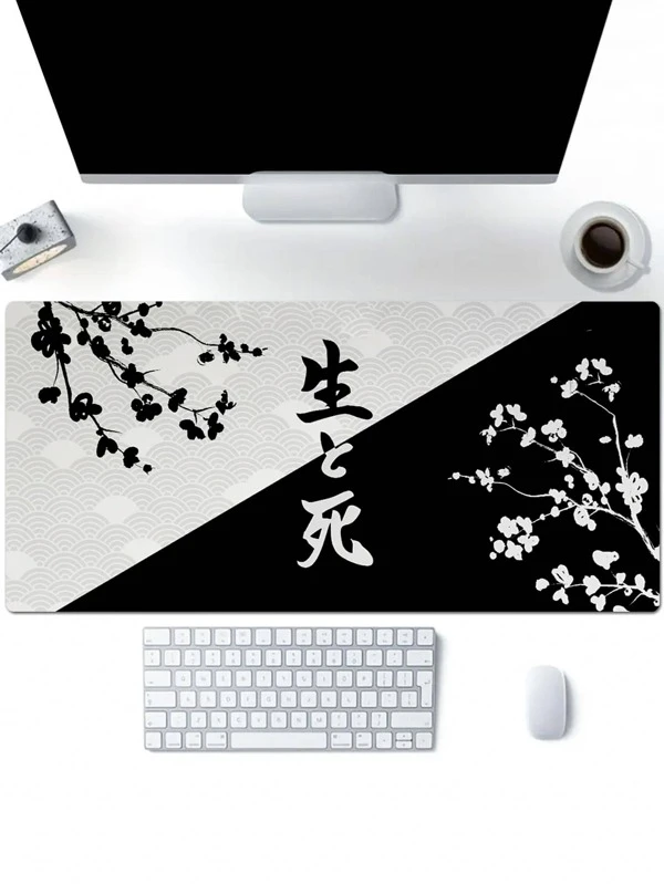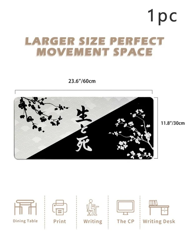 Mouse pad 30 x 60 cm, smooth rubber surface, creative design, black and white balloon, mesh pattern, seamless rectangle shape