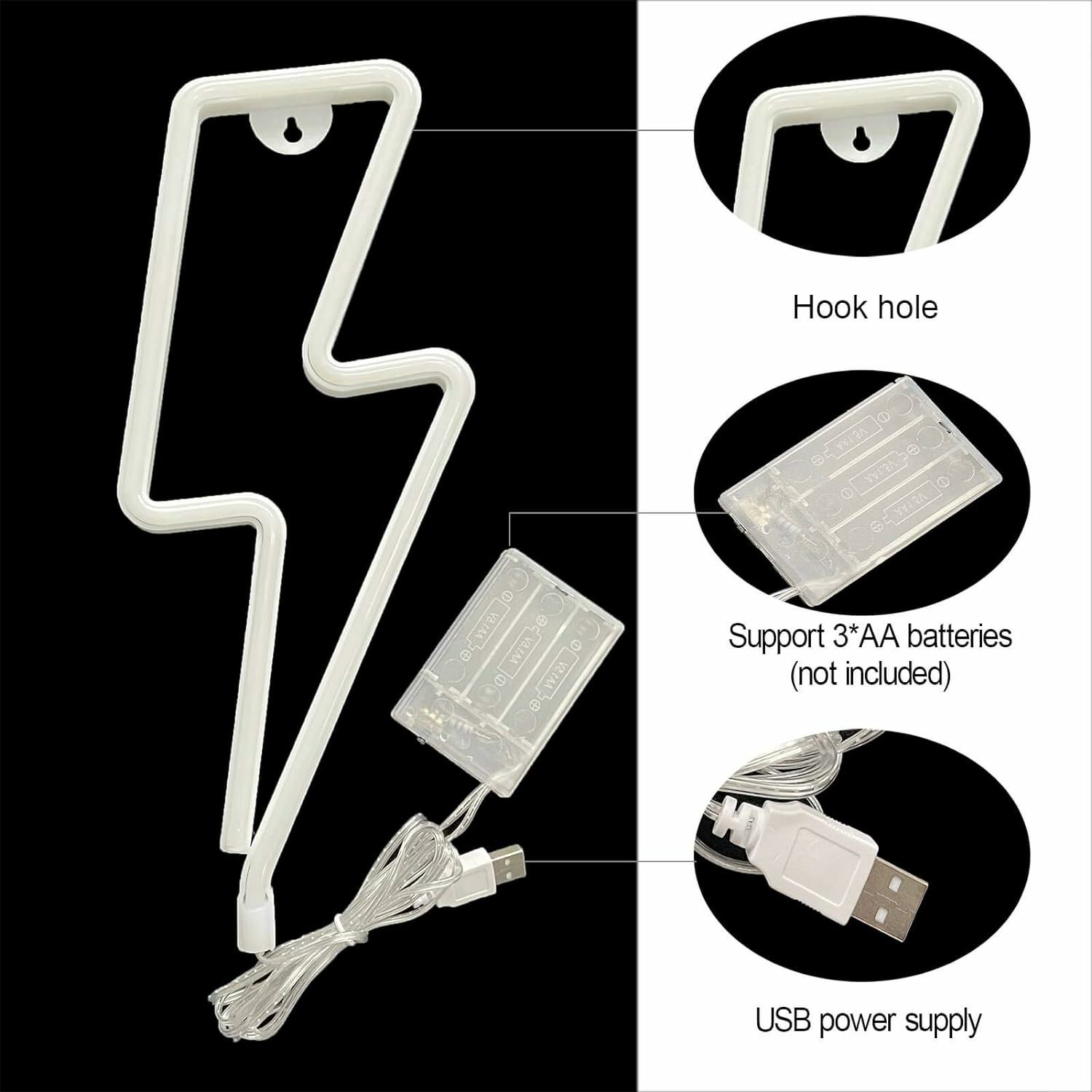Style Modern Brand VIFULIN Color Red Material cyrstal, glass, metal, Acrylic Mounting Type Wall Mount About this item 【4 Hooks】: Our lightning bolt decor lights come with 4 hooks for ease of display on wall or just rest on mantle, table or dresser. The lightning neon room decor will create a romantic atmosphere in your room, very suitable for your little princess and prince. 【USB / Battery Operation】: The lightning bolt neon sign light comes with 3xAA battery box (3xAA battery NOT included) and USB cable. You can either use the battery pack or plug it to USB port, power bank, PC etc. You can hang it on the wall or put it on the table at will to create a stylish bar or game room. 【Make Your Home Warm and Artistic】: VIFULIN LED lightning neon lights are ideal for home decoration and parties, it makes your home more colorful and interesting. This lightning bolt night light will provide just right light output for bedroom, and there will be no noise. 【Acrylic LED+Silicon Strips+ABS】:This red lightning bolt LED neon light sign use at low voltage, save electricity, and it will not get too hot. Our neon lights signs are made of flexible silicon LED strip lights and acrylic, no risk of glass breakage or leakage of hazardous materials. 【Excellent Gift and Decoration】: Our red lightning LED neon sign is suitable as a gift for family, children, lovers, friends, teachers, etc. This LED neon lights are widely used in weddings, bachelor parties, bridal banquets, birthday parties and other celebrations.VIFULIN LED neon light sign can add a little brightness to your life and create a warm and fantastic atmosphere for your family, It's an excellent solution for home decoration. Not only led neon signs can be used to decorate your kids room, bedroom, living room, bar to make them more colorful, but also can be used to decorative birthday party, wedding, Christmas. This Lightning bolt neon light sign is perfect for adding personality to bedrooms, homes, offices, bathrooms, game rooms, cafes, bars, parties, windows, desks, dressers and balconies. Specification Lights Shaped: Lightning bolt Lights Color: Red Light Source: LED Switch Mode: ON/OFF Switch Power Supply: 3 AA Batteries (not included) & USB Cable Material: Acrylic LED + Silicone Strip + ABS lightning bolt neon sign Note: Please turn on the switch before use. Please remove the batteries if you use USB. Store the night light in a cool and dry place and remove batteries if it is not to be used for a long time. lightning bolt led neon sign lightning bolt neon light sign lightning bolt led neon sign light 2 Ways to Charge Use 3 AA batteries(not included) or with the USB adapter to turn it on. The lightning bolt neon light sign can be connected to a mobile power source or a computer. You can choose the power supply method according to your needs. Easy To Use The package contains 4 hooks, allowing you to easily hang the neon lights. The hook makes it a wall signs, and can also be placed on a table or anywhere in the home. The USB neon sign cable is 71 inches long and can be placed anywhere. Safe & Durable The lightning bolt neon lights are made of flexible LED strips and acrylic backplanes, There is no risk of glass breakage or leakage of dangerous materials. And it won’t heat up even after long time use. It is safe for children and the elderly. lightning bolt light sign